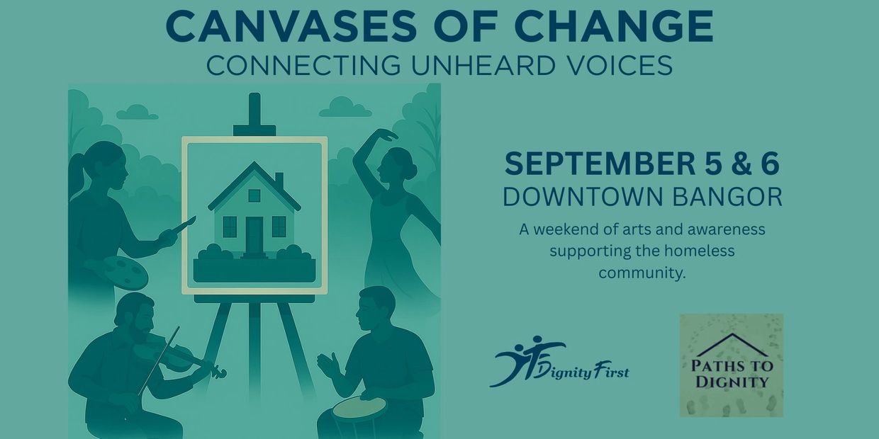 Friday, September 5, 2025 - 5pm, at the Clark Building, 14 State Street Bangor. In partnership with the Bangor First Friday Artwalk, Dignity First and Paths to Dignity will be hosting a gallery space during the September Bangor First Friday Art Walk to kick off the weekend of events. Stop in to see a collection of work by currently and formerly unhoused artists and grab a map to other locations throughout downtown where more artwork is being displayed. We will be serving light refreshments and maps will be available! Visit this link for event specific details: bit.ly/CanvasesofChangeArtWalk